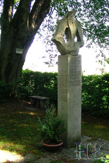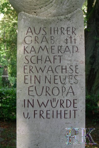 Hier ruhen Vereint im Frieden des Todes Den Soldaten ganz Europas Jean Louis Lefevre aus Verviers/Aisne, Franzose Verstorben am 22.5.1800 Francois Privat, Hauptmann, Franzose Verstorben am 15.12.1793 ( Vermutlich bei den Revolutionskriegen die ja meistens bei uns ausgetragen wurden) Joseph Tronch, Kanonier, 2. Regiment der Grande Armee ( Napoleon) Verstorben an Verletzungsfolgen in Obermarchtal am 18.8.1806 Und andere unbekannte Franzosen Diese Stelle wurde errichtet vom 96.Nachschubbataillon ( Panzerdivision ??) Am 20.2.1946 Übersetzung: Rudolf Fischbach |