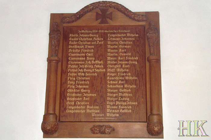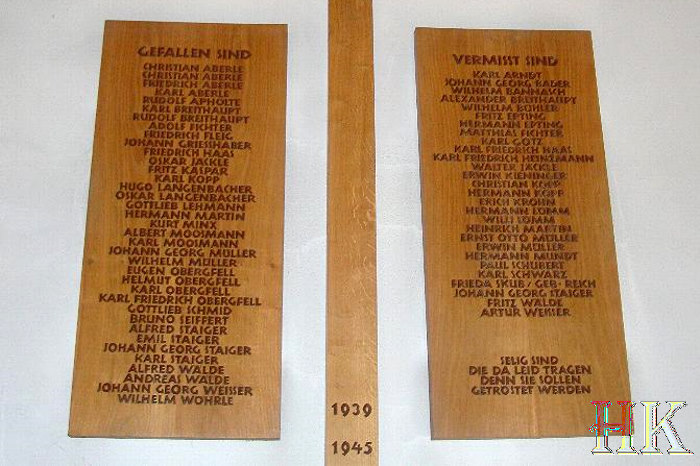 Gedenktafeln in der evangelischen Kirche auf denen Opfer verzeichnet sind