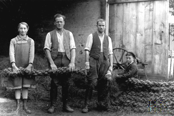 | Herstellung von Seegraszöpfen (Seegras fand geflochten als Strickersatz Verwendung) | |||||||