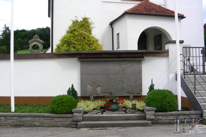 Ehrenmal bestehend aus einer Steinplatte außen an der Friedhofsmauer, westl. der Pfarrkirche St. Radegundis |