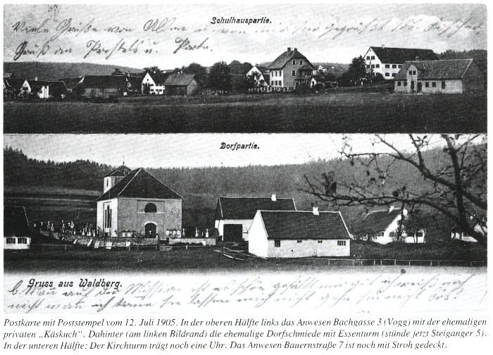 | eine alte Postkarte von 1905, Ansichten aus der Dorfmitte | |