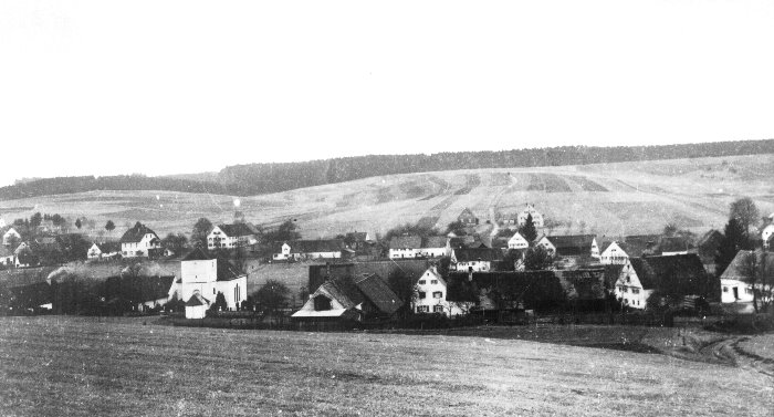 | Ansicht aus Norden, man sieht das schöne Schwarzachtal, rechts geht es zum "Säuberg, der hat seinen Namen von den vielen Wildschweinen, die es hier gab, auch befanden sich noch Reste einer Wildschweinfalle bis ca. 1964 im Wald, das war ein großes Rundell mit dicken Stämmen die senkrecht im Boden eingegraben waren, es gab einen Zugang den man dann runterfallen ließ sobald sich genügend Wildschwein die angelockt wurden, drinnen waren | |