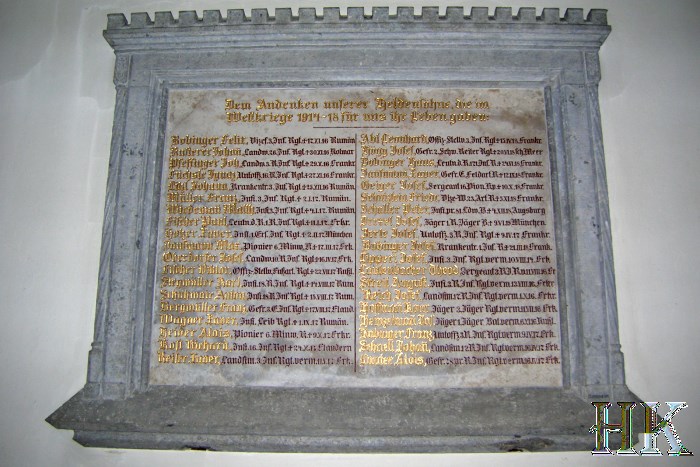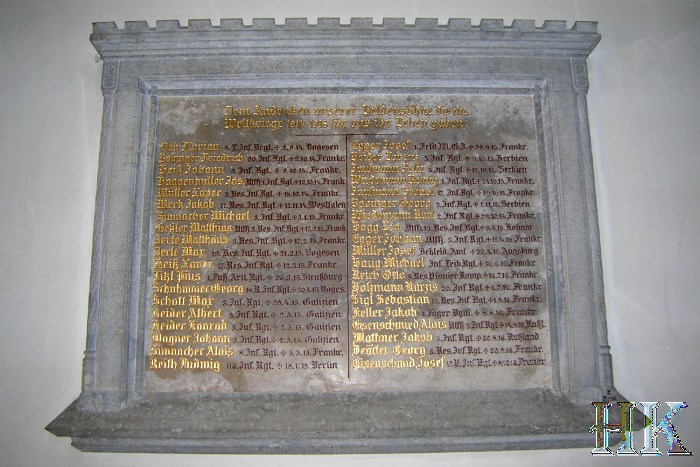 Gedenktafeln 1914-1918 in der Pfarrkirche St. Felizitas |