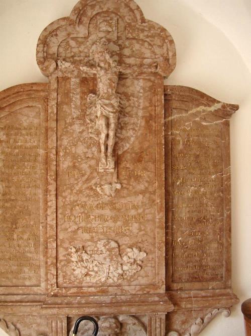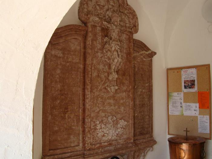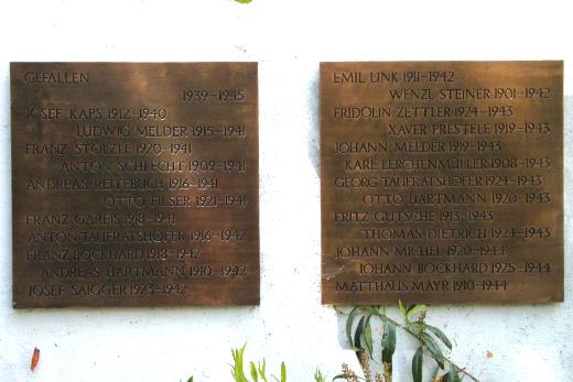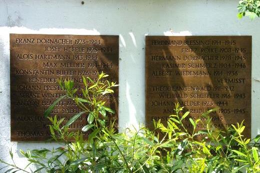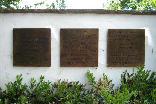 Gedenktafeln und Grabsteine auf denen Opfer verzeichnet sind
