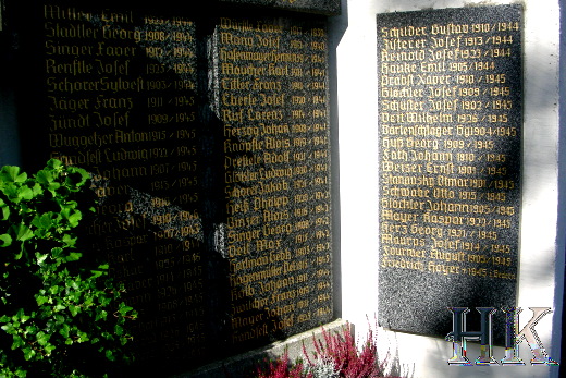 Gedenktafeln und Grabsteine auf denen Opfer verzeichnet sind zum Blatt 2