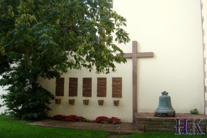 Gedenktafeln an der Mauer neben der Kirche St.Mauritius |
