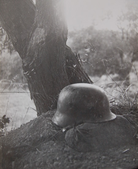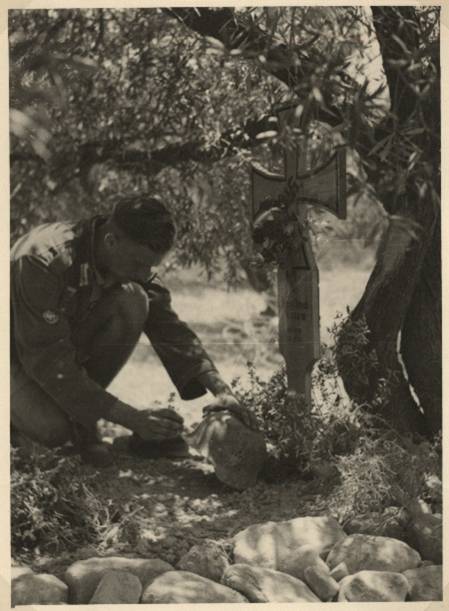 ![]() Der letzte Dienst, das schreiben seines Namens auf seinen Stahlhelm, bei der Erstbegräbnisstätte |