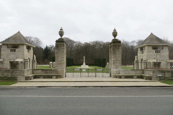 Der Britische Ehrenfriedhof im Klever Reichswald (Reichswald Forest War Cemetery 1939–1945) ist der größte Kriegsgräberfriedhof des Commonwealth in Deutschland. Es befinden sich dort 7654 Grabstätten. Der architektonische Entwurf stammt von Philip Dalton Hepworth. Wesentliche Arbeiten zur Errichtung dieser Gedenkstätte wurden durch deutsche Kriegsgefangene geleistet. Bis 1948 wurden alle im Kreisgebiet Kleve zu Tode gekommenen alliierten Soldaten auf dem Ehrenfriedhof bestattet. Hierbei handelt es sich um 4000 Piloten und Insassen von Kampfflugzeugen, unter ihnen 706 Kanadier, im Weiteren um Soldaten die bereits in den Jahren 1940-1944 im Luftkrieg den Tod fanden bzw. bei den Endgefechten im Rheinland, unter anderem bei der Schlacht im Reichswald vom 8. bis 13. Februar 1945. |