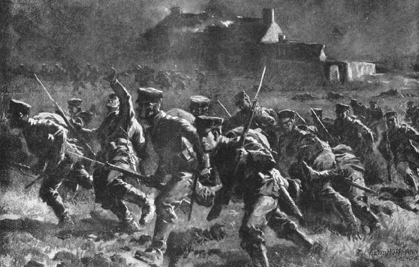Lindau: 3. und 4. Kompanie vom Ersatz-Bataillon des 20. Infanterie-Regiments Neuburg a. D.: Stab II. Bataillon 5. und 6. Kompanie vom Ersatz-Bataillon des 15. Infanterie-Regiments Neu-Ulm: 7. und 8. Kompanie vom Ersatz-Bataillon des 12. Infanterie-Regiments Freising: Stab III. Bataillon, 9. Kompanie vom Ersatz-Bataillon des 1. Jäger-Bataillons Passau: 10., 11. und 12. Kompanie vom Ersatz-Bataillon des 16. Infanterie-Regiments Die Aufstellung des Regiments wurde Anfang September begonnen, als Mannschafts-Ersatz wurden zunächst 1/3 ausgebildete Mannschaften, 2/3 Kriegsfreiwillige und Ersatz-Reservisten zugewiesen; vom 10.09. an galt das Regiment als mobil, Kriegsbereitschaft sollte am 30.09. ereicht sein. Um dieses Ziel zu erreichen, mußte mit Anspannung aller Kräfte gearbeitet werden. Da die Aufstellung des Regiments im Frieden nicht vorgesehen und vorbereitet war, machte die Bereitstellung des hohen Bedarfs an Bekleidung und Ausrüstung große Schwierigkeiten. Sie wurden aber im Zusammenwirken aller einschlägigen Stellen überwunden. Beim Ausmarsch war alles ebenso gut, manches besser wie bei den Feldtruppenteilen vorhanden. Nur in einzelnen fehlenden Stücken waren behelfsmäßige Aushilfen gegeben worden. So wurden an Stelle der Tornister Rucksäcke geliefert, die, fabrikmäßig hergestellt, zum größten Teil noch nachgenäht werden mußten; an Stelle von Helmen bekam das Regiment die für die Bekleidung des Landsturms vorgesehene Wachstuchmütze mit grauem Überzug - eine Aushilfe, die sich bei der Ähnlichkeit mit der englischen Kopfbedeckung gleich in den ersten Kämpfen als verhängnisvoll erweisen sollte. An Stelle der Feldfernsprecher wurden - im übrigen sehr gute - Kastenapparate abgegeben, die aber so schwer waren, daß sie vom Manne neben dem übrigen Gepäck nicht getragen werden konnten. Bei der weiten räumlichen Trennung der einzelnen Glieder des Regiments war es dem Regiments-Kommandeur nur durch Ausnützung eines ihm zur Verfügung gestellten Kraftwagens möglich, mit den einzelnen Kompanien persönlich Fühlung zu nehmen und sich vom Fortgang der Ausbildung ein Bild zu schaffen. Störend für die Ausbildung, daß infolge des hohen Ersatzbedarfes der Feldtruppen am 16.09. alle ausgebildeten Mannschaften abgegeben werden mußten; Kriegsbereitschaft sollte nun erst am 10.10. erreicht sein. Vom 10.10. an wurde die 12. Reserve-Infanterie-Brigade auf dem Truppenübungsplatz Lager-Lechfeld zusammengezogen zu Gefechtsschießübungen, Bataillons-, Regiments- und Brigadeübungen - ein längerer Nachtmarsch in der Brigade mit anschließender Gefechtsübung ist wohl noch allen Teilnehmern in Erinnerung; am 18.10. fand eine Besichtigung durch den Divisions-Kommandeur, Exzellenz von Speidel statt; anschließend daran wurden dem Regiment nach einem erhebenden Feldgottesdienst in feierlicher Weise die Fahnen übergeben. Am 19.10. wurde die Marschbereitschaft befohlen, am 21.10. begann der Abtransport. Bei der Fahrt durch Schwaben, Württemberg, Baden und das Rheinland war die Begeisterung und Opferfreudigkeit der Bevölkerung rührend. Liebesgaben fielen in menge zu. Die Fahrgäste der neben den Truppenzügen haltenden Züge des allgemeinen Verkehrs warfen unseren Leuten Geld, Zeitungen, Rauchwaren herüber. Bei den Fabrikstädten der Rheingegend standen die Arbeiter massenhaft an den Gleisen, jubelten der Truppe zu und gaben von dem Wenigen, daß sie hatten. Besonders liebenswürdig wurden die in Boppard am Rhein haltenden Züge bewirtet und beschenkt. Das Bild änderte sich als die Züge bei Herbestal die deutsche Grenze überschritten und über Lüttich, Brüssel und Lille weiterrollten. Finstere Gesichter der Landeseinwohner, um Brot bettelnde Kinder, Schützengräben und zerstörte Häuser mahnten an den Ernst des Krieges. Nach Ankunft in Lille am 24.10. wurde das Regiment in den Vororten dieser Stadt einquartiert und war im Verbande der 6. Reserve-Division zunächst als Reserve für die 6. Armee bestimmt. Nur kurze Zeit sollte dem Regiment hier noch zur Vollendung der Ausbildung zur Verfügung stehen: am 27.10. um 1.45 Uhr morgens traf der Alarm-Befehl ein. |