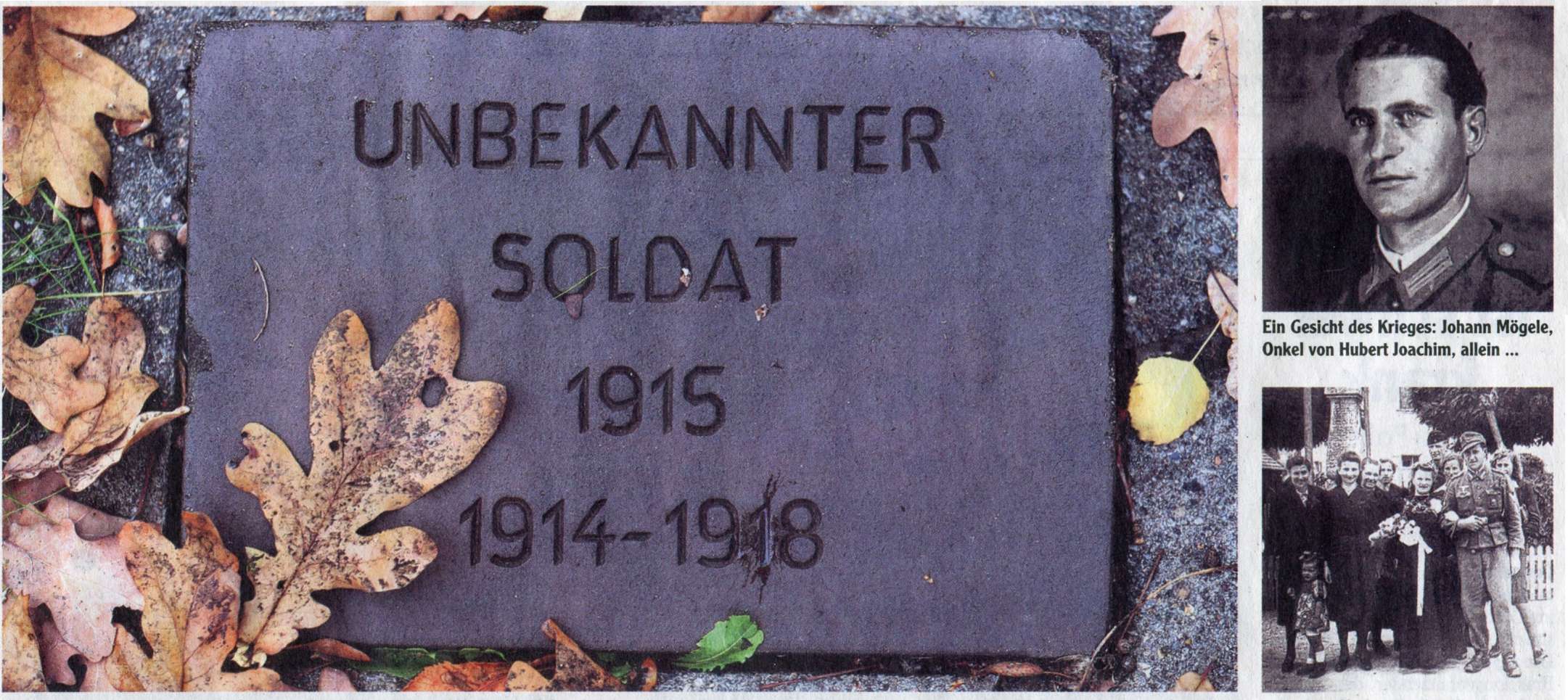 Ein Grab für einen unbekannten Soldaten: Hubert Joachim und Katharina Hahne haben sich zum Ziel gesetzt, möglichst vielen Kriegsopfern einen Namen und ein Gesicht zu ... und im Kreise der Familie vor einem geben. Deshalb haben sie im Internet eine Datenplattform aufgebaut. Foto: Wolfgang Kumm, dpa/www.kriegsopfer.org (2) Kriegerdenkmal.